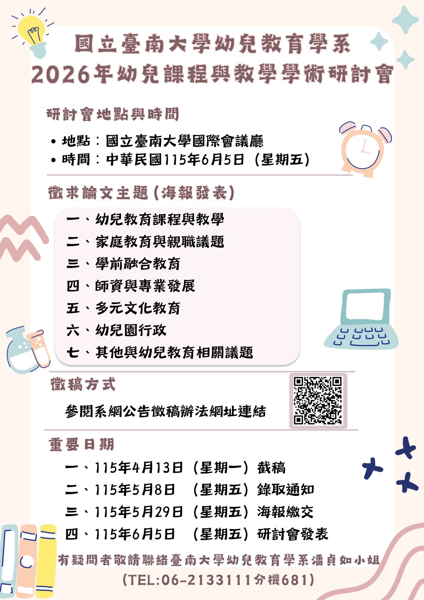 國立臺南大學2026幼兒課程與教學學術研討會徵稿